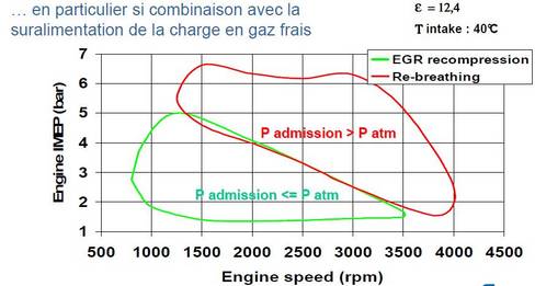 La zone de fonctionnement est étendue par rapport à l'EGR recompressé.