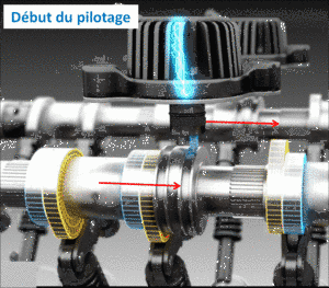 Le dispositif fait appel à 2 actionneurs. Le premier agit sur l'arbre à cames d'échappement, le second sur l'arbre à cames d'admission.