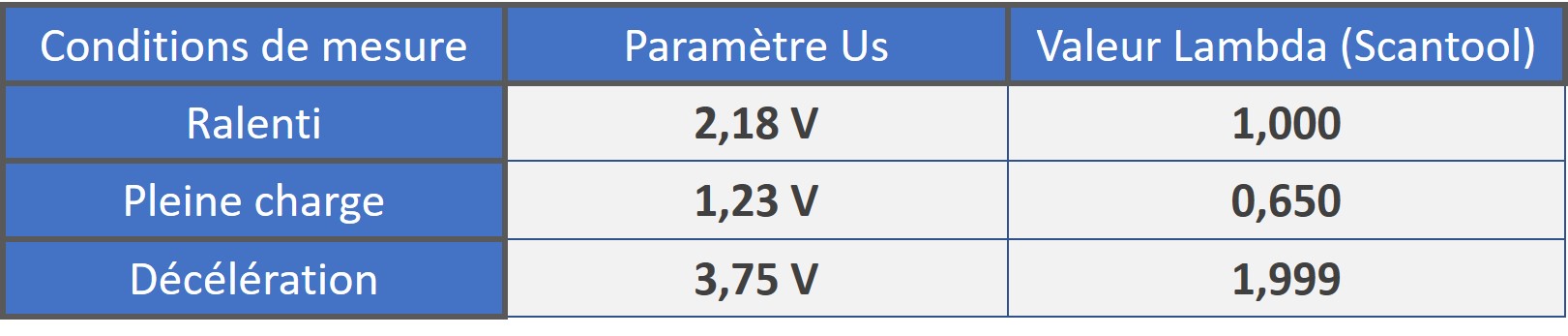 - Interprétation de la tension de sonde Us ou de la valeur Lambda communiquée par le calculateur.