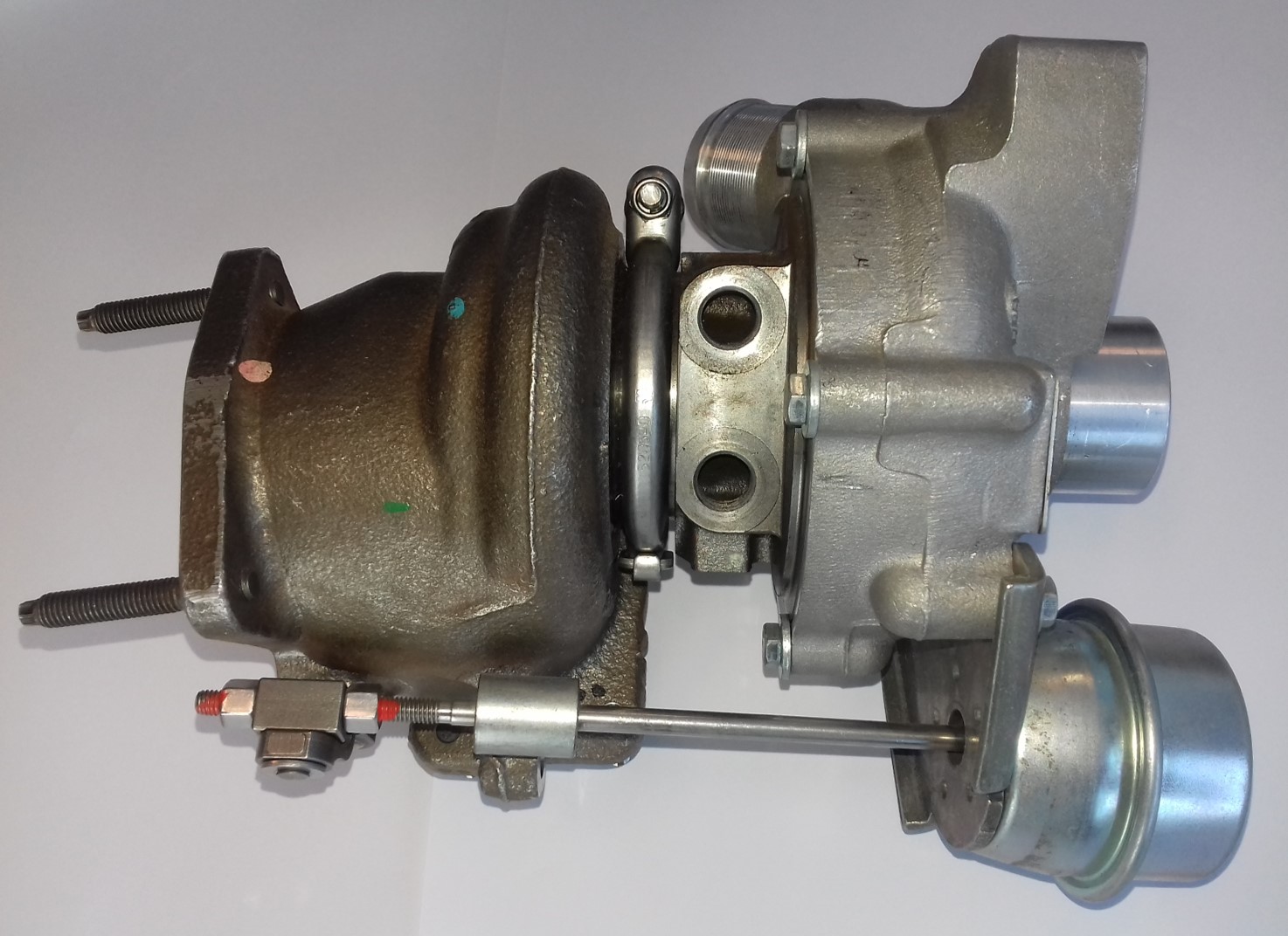 - à commande pneumatique. La Wastegate est actionnée par un poumon raccordé à une électrovanne. Pour réguler la pression le calculateur agit sur l'électrovanne raccordée à une source de dépression (turbo régulé en dépression) ou à la sortie du compresseur (turbo régulé en pression).