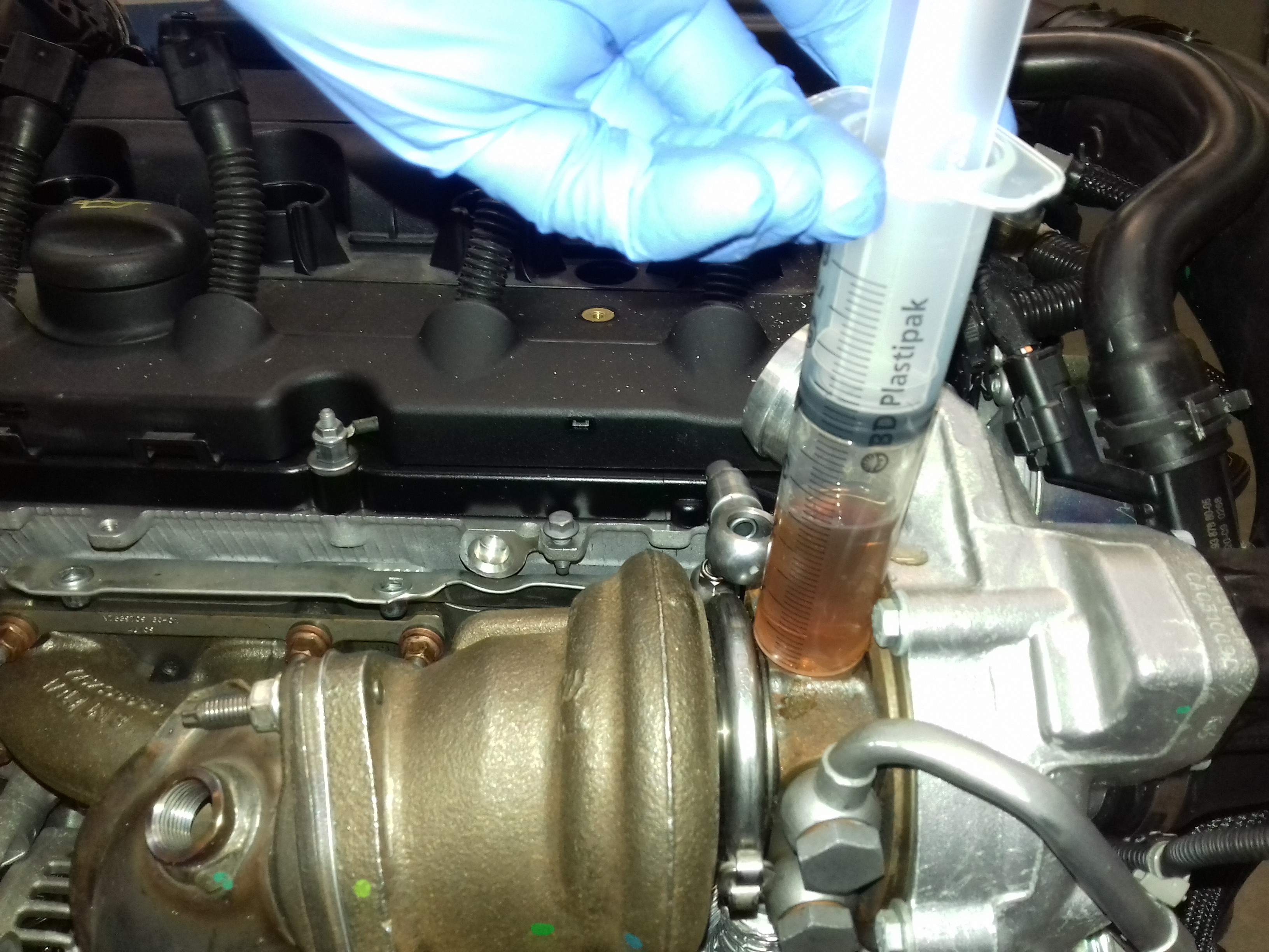 Ci-dessous, le remplissage du turbo en huile moteur.