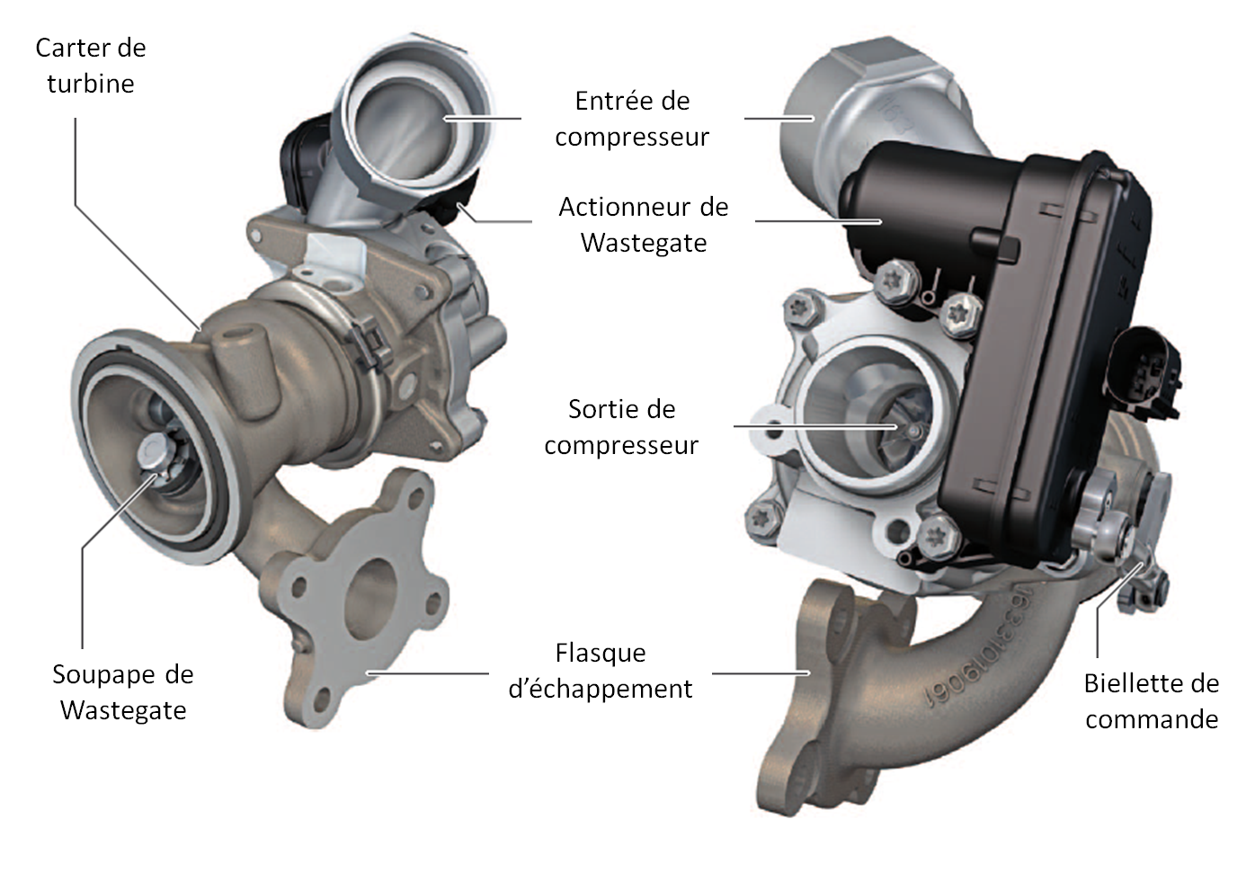- à commande électrique. Pour réguler la pression, le calculateur agit sur un actionneur raccordé mécaniquement à la Wastegate.