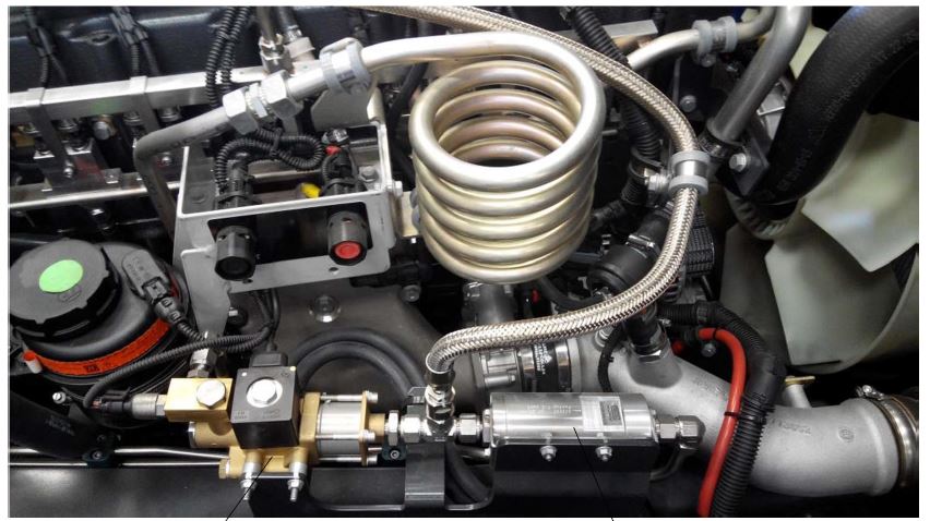 Après ce traitement, le gaz est prêt à être injecté dans le moteur à une pression de 9 bar grâce à l'intervention du régulateur de pression installé avant le moteur.