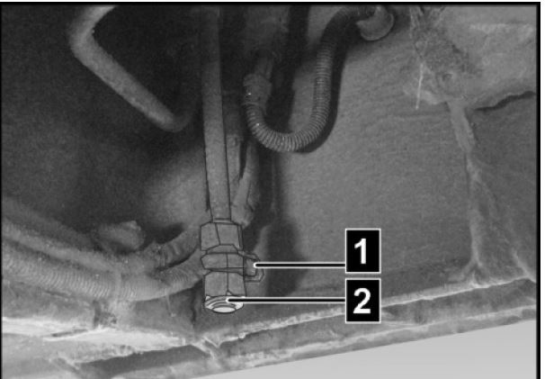 L'opération de vidange doit être exécutée en plein-air, le moteur arrêté, dans une zone dépourvue de sources d'amorçage de flammes dans un rayon d'au moins 5 m autour du véhicule.