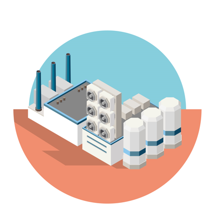 - Source de CO₂ : Le CO₂ peut être capté à partir de différentes sources, notamment les centrales électriques (à gaz ou à charbon), les installations industrielles ou directement de l'air ambiant (ce dernier étant connu sous le nom de captage direct de l'air). Le processus implique généralement la séparation du CO₂ des autres gaz. L'air traverse des filtres chimiques qui absorbent le CO2 et libèrent l'air résiduel.