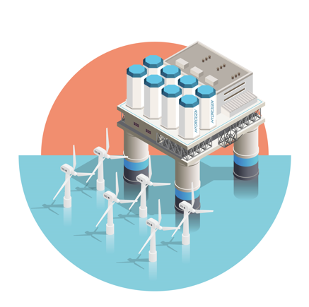 L'électrolyse de l'eau (H2O). Il s'agit d'un processus chimique qui permet de décomposer l'eau (H₂O) en hydrogène (H₂) et oxygène (O₂) à l'aide d'un courant électrique. Pour produire de l'hydrogène vert, il faudra utiliser de l'électricité décarbonée obtenue à partir d'énergie renouvelable ( champs éoliens, barrage hydroélectriques, parcs solaires...).