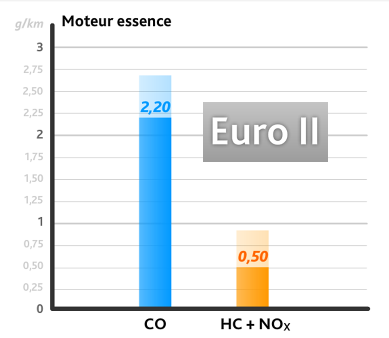 Les rejets de NOx baissent de 25%, les hydrocarbures sont séparés en 2 catégories les HC et les HCNM.
