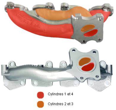 Cette technologie s'applique au moteur 4 cylindres. Les conduits d'échappement des cylindres 1-4 et 2-3 sont séparés jusqu'à l'intérieur de la turbine. Cette solution limite les interférences entre les cylindres et favorise la suralimentation par impulsion.