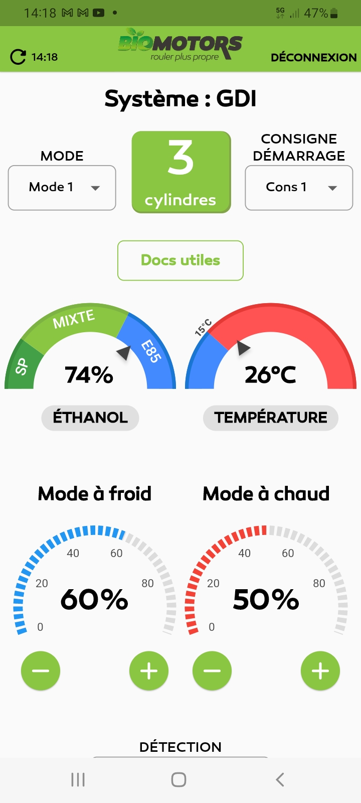 Ci-dessous l'application Biomotors permettant le paramétrage :
