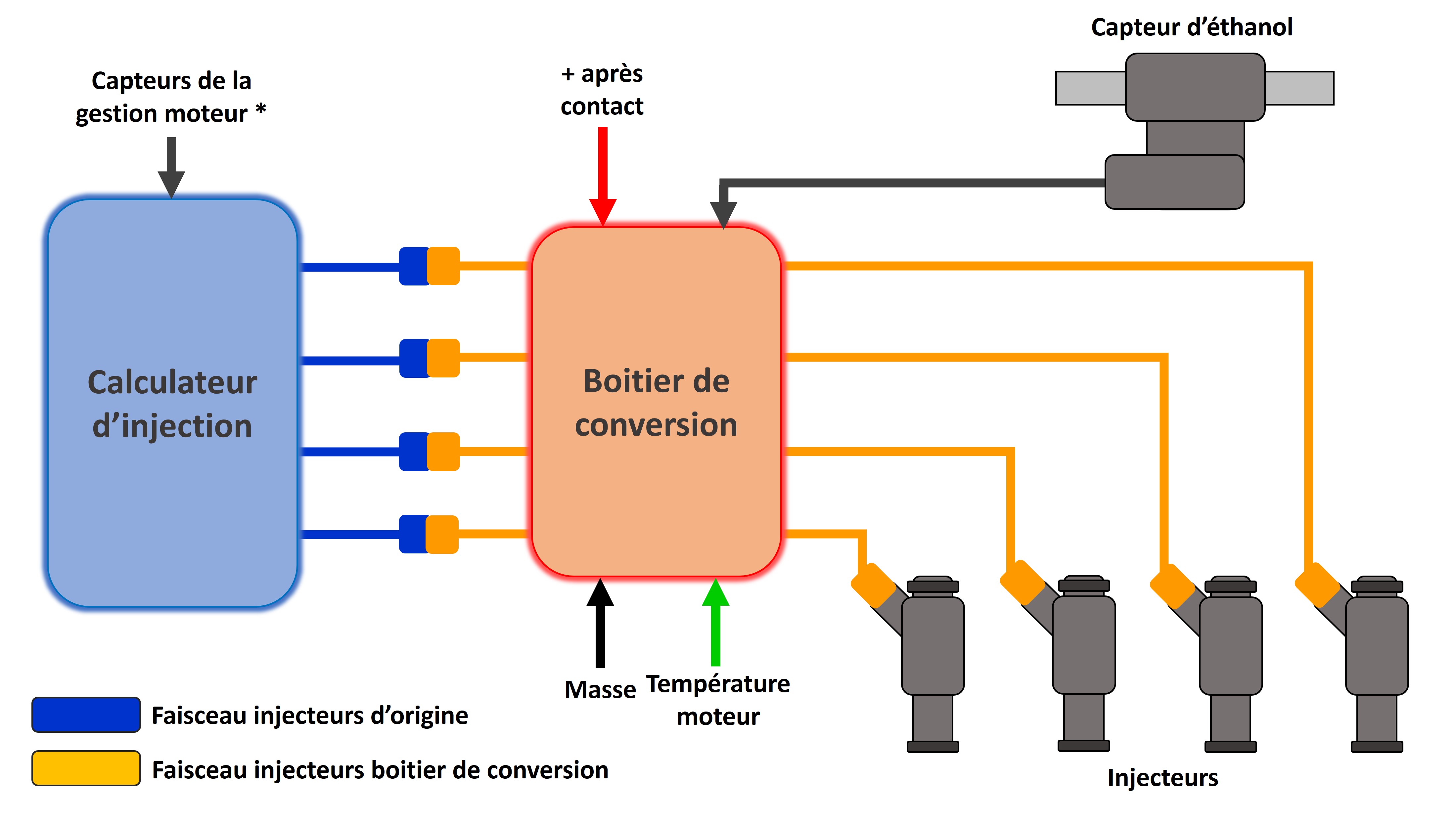 - Il existe des boitiers de conversion spécifiques à l'injection indirecte et à l'injection directe.