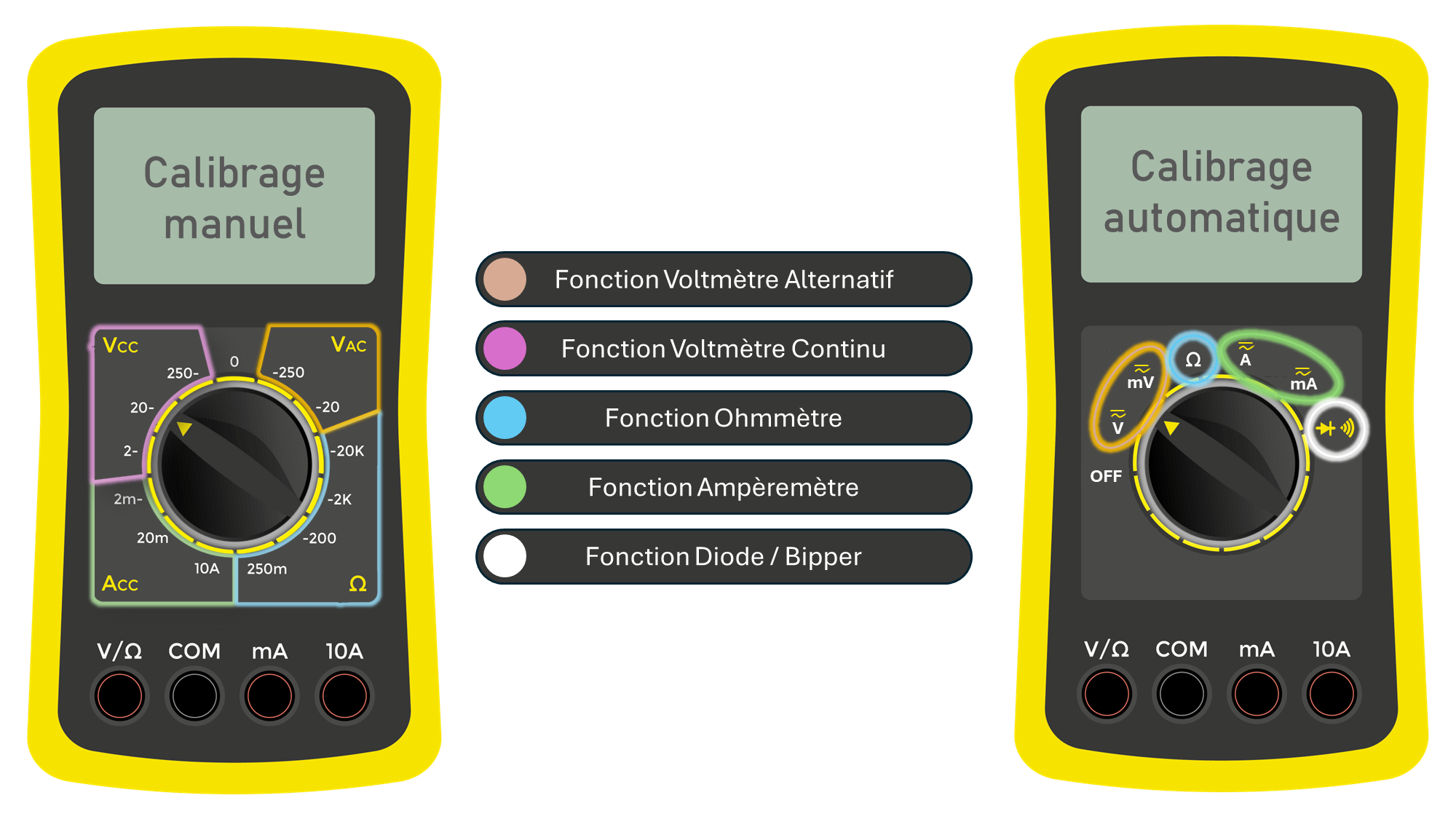 | Mots-clés | Multimètre, voltmètre ampèremètre, ohmmètre, tension, courant, intensité, résistance, potentiel |