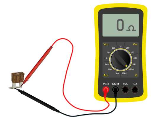Dans notre exemple, la résistance du fusible est de 0Ω.