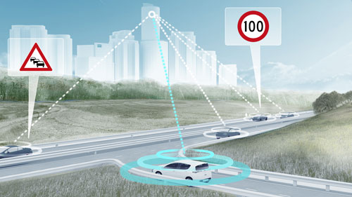 Pour BOSCH, le système « Connected Horizon » permet la mise en relation entre les données du véhicule, de la cartographie, et le cloud. Les évolutions prévues sont d'anticiper les changements sur l'état de la route ou encore la mise en relation avec les autres véhicules (via la communication V2V). D'ores et déjà ce système permet de :