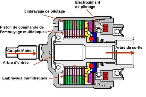 Il s'agit d'un système électromécanique permettant une liaison entre les essieux avant et arrière. En cas de patinage des roues avant, le coupleur à disques permettra d'entraîner l'essieu arrière. Le véhicule passe alors en 4 roue motrices.
