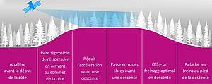 - La pente et sa longueur, pour gérer de façon différente si le véhicule se trouve dans une montée ou dans une descente.