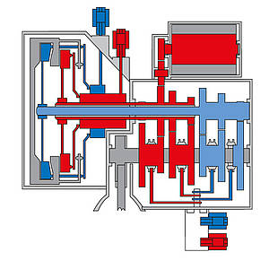 Au niveau de la conduite, elle est très proche d'une boîte automatique. Le sélecteur est de type PRND. Le passage des vitesses se fait sans à-coups, en raison de la conception spécifique à ce type de boîte. Comme pour la boîte de vitesses DSG (fiche innovauto DSG) cette boîte de vitesses peut se décomposer en 2 demi-boîtes mécaniques robotisées, l'une pour les rapports pairs, l'autre pour les rapports impairs, partageant le même pont. Ces deux demi-boîtes se passent le relais via un double embrayage, lors des changements de rapport. Par exemple, si l'embrayage de la demi-boîte 1 est fermé nous sommes en première ; dans la demi-boîte 2 le rapport de deuxième est engagé mais son embrayage est en revanche ouvert. Pour passer en deuxième il faudra donc fermer l'embrayage 2 tout en ouvrant l'embrayage 1. Une fois l'opération terminée, la demi-boîte 1 engagera la troisième vitesse. Au régime adéquat, les embrayages seront pilotés à nouveau pour passer la vitesse supérieure. Quand une demi-boîte transmet la puissance, l'autre a déjà engagé le rapport supérieur ou inférieur : elle est prête pour le "croisement" des embrayages et donc pour le changement effectif de rapport.