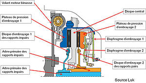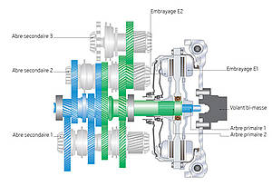 C'est une boîte de vitesses robotisée qui comporte deux embrayages secs. Comme la boîte de vitesses à double embrayage à bain d'huile (DSG6).