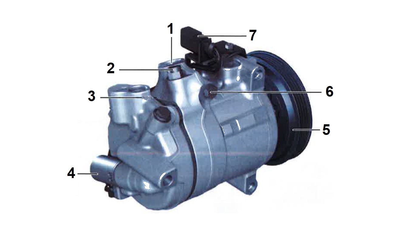 Le compresseur possède 9 pistons et il est à cylindrée variable pilotée; sa cylindrée de 31 cm3 est plus faible qu'un compresseur habituel.
