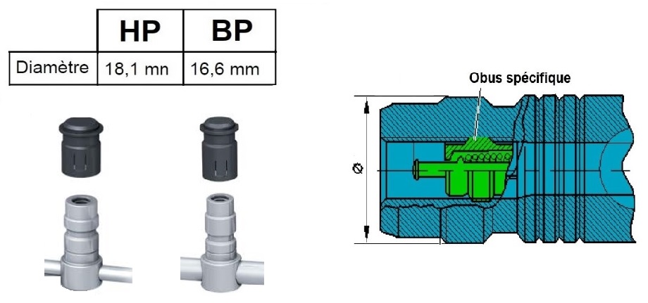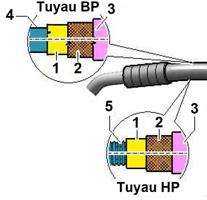 Pour la sécurité des techniciens en après-vente, les bouchons des raccords n'ont pas de joint afin d'éviter une accumulation de fluide et une montée en pression dans le bouchon en cas de fuite de l'obus