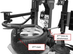Le remplacement d'un pneu run flat se fait à l'aide d'une machine équipée d'un système « troisième bras » pour aider l'opérateur à replacer le talon du pneu dans la jante.
