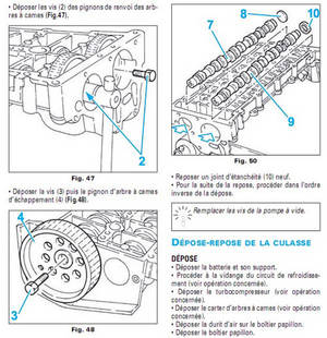 Elle explique les méthodes de dépose / repose des éléments du moteur, la culasse par exemple. On y retrouve également les valeurs de réglage et les couples de serrage pour les différents moteurs équipant le véhicule. Elle permettra aussi de différencier les moteurs montés sur le véhicule.