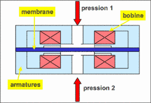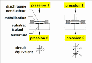 -Mesure d'une pression différentielle (courant induit par le déplacement de la membrane). |