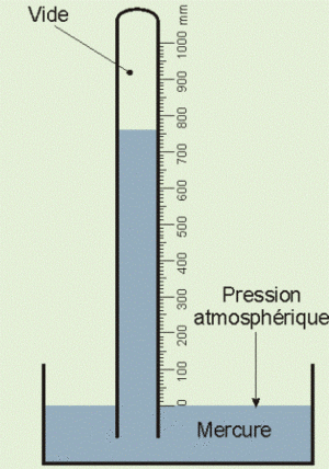 Le physicien Evangelista Torricelli fut le premier à se servir du baromètre à mercure : il consiste à mettre un tube dans un bassin de mercure et voir si le niveau du mercure à l'intérieur du tube monte (« Beau temps ») ou descend (« Mauvais temps »). Evangelista Torricelli a mis en évidence, à travers cette expérience dite "expérience du vide", la notion de pression atmosphérique.