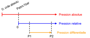 Pression absolue : pression mesurée au-dessus du vide total ou du zéro absolu. Le zéro absolu représente une absence de pression.