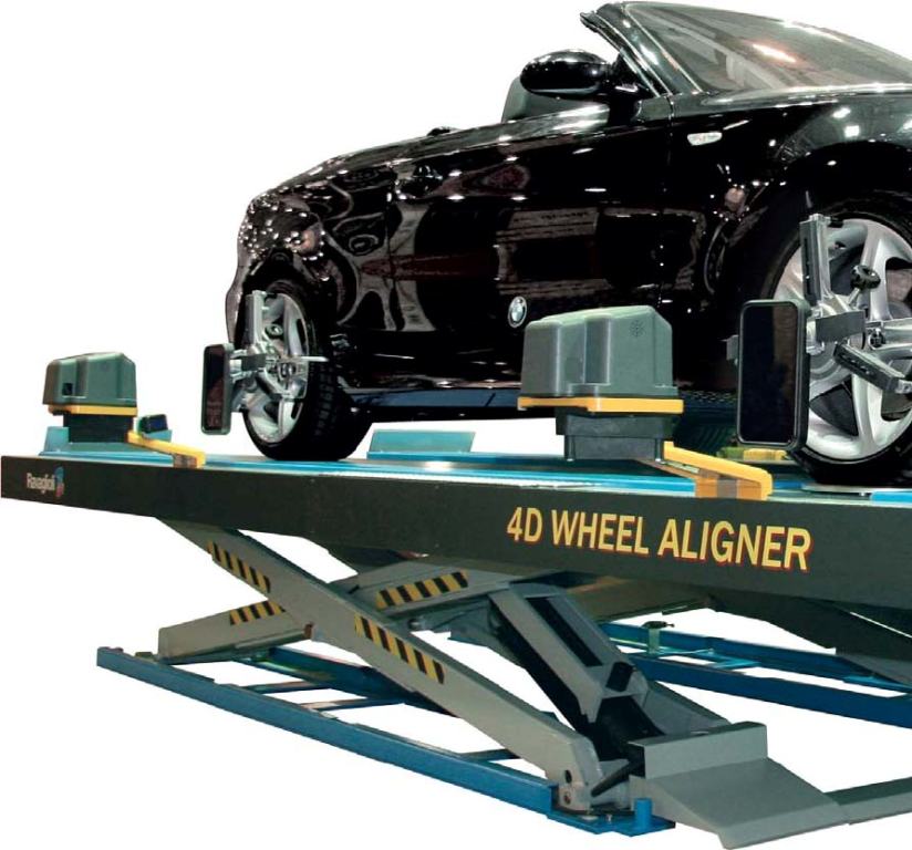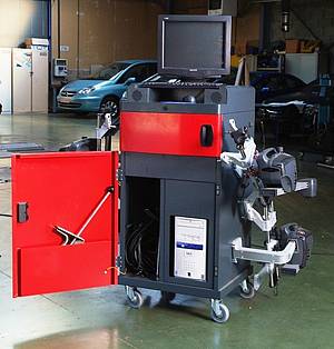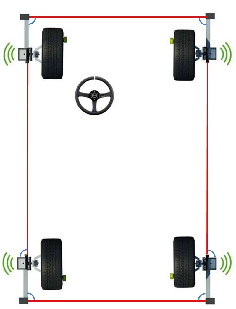 4 caméras CMOS sont pointées sur 4 cibles (1 par roue). Ces caméras analysent en permanence la forme et la position des figures géométriques réfléchissantes situées sur les cibles. La déformation de ces figures donne précisément la position de la roue dans l'espace, c'est-à-dire les positions par rapport aux 3 axes (vertical, horizontal et longitudinal) ainsi que l'éloignement des roues les unes par rapport aux autres.