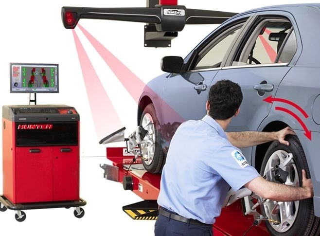L'appareil de contrôle de géométrie est utilisé le plus souvent suite au remplacement des pneumatiques. Il sert à contrôler et régler la géométrie, opération souvent appelée « contrôle et réglage du parallélisme ».