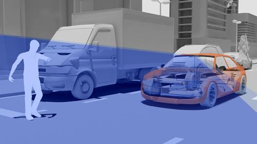 Combiné à la classification de l'objet basée sur des caractéristiques communes, ce procédé fait du système de caméra stéréo le nœud central du process de décision pour le déclenchement du freinage d'urgence (jusqu'à 1 G) si le conducteur ne réagit pas. La précision du système permet de calculer avec précision le point d'impact et la probabilité de collision, et de préparer au mieux les systèmes de sécurité passifs et actifs.