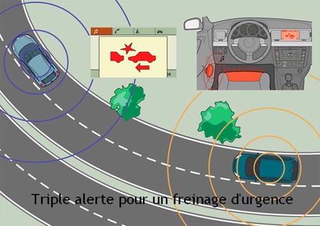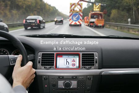 En avance d'un an sur le calendrier prévisionnel du Consortium, General Motors est le premier à présenter l'intégration du système. Sur l'afficheur de la radio et de la navigation, on verra donc en plus les alertes !