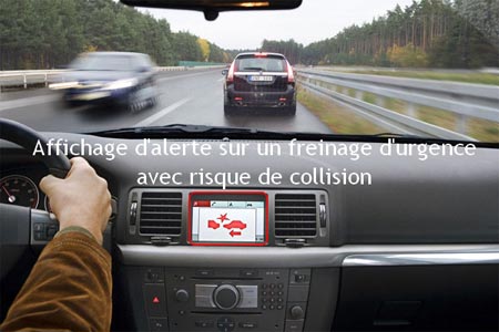 - risque de collision avec un véhicule arrêté sur la voie suite à un freinage d'urgence
