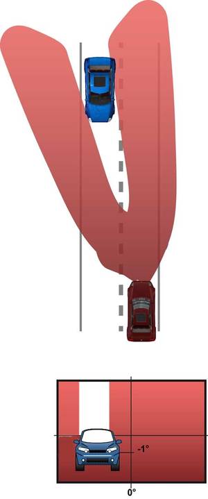 À partir des deux grandeurs d'entrée, la position et l'éloignement par rapport au véhicule détecté, le système peut calculer les positions nécessaires du réglage de site.