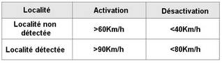 • la vitesse du véhicule chute en dessous de 30 km/h