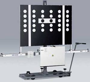 Réglophares ou régloscope aligné avec le plan du véhicule par un laser de positionnement