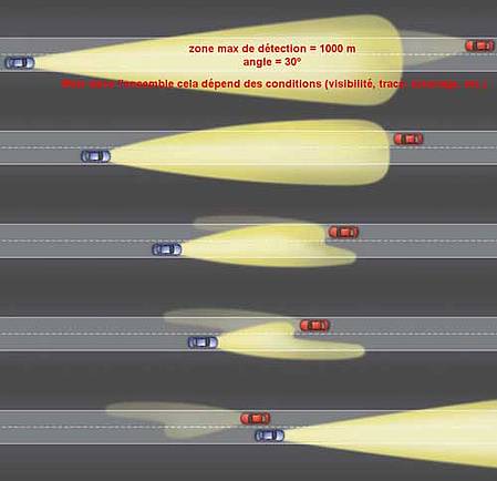 Ces informations sont, entre autres, utilisées pour un pilotage optimisé des projecteurs avant. Cela permet d'obtenir une répartition améliorée de l'éclairage des projecteurs au Xénon en adéquation avec la situation routière momentanée.