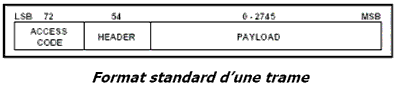 Le Code d'accès (Access code), l'en-tête (Header) et le corps du message (Playload), ce qui donne une trame ayant le format suivant :