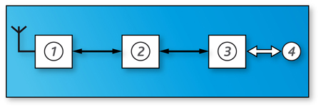 - un émetteur/récepteur radio proprement dit fonctionnant dans la bande 2.4GHz et basé sur un processus binaire de modulation de fréquence