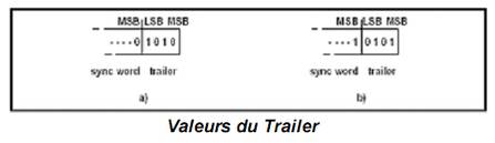 - Trailer : Ce champ est également utilisé pour réaliser une compensation de la composante continue. Sa valeur est fonction du bit de poids fort du SyncWord.