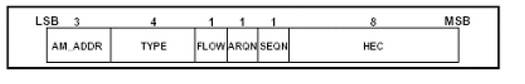 TYPE : ce champ détermine le type du paquet de données, donne le type de liaison, et indique combien de « timeslots » (intervalle de temps de largeur 625 microsecondes) seront utilisés pour la transmission du message.