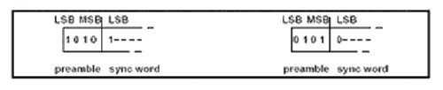 - Preamble : Ce champ est utilisé pour contrebalancer la composante continue. Il ne peut prendre que 2 valeurs, en fonction du bit de poids faible du champ Sync Word :