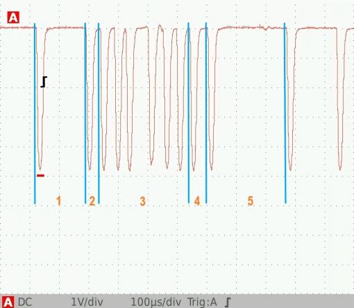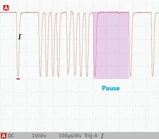 Avec un tick de valeur 3 µs, un grignotage de base aura une durée de 36 µs. Cela donnera le code binaire 0000.