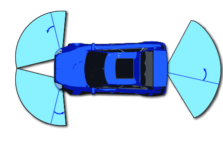 Leur plage de détection s'étend de 30 à 150 cm en avant et en arrière du véhicule. Ils utilisent les principes de propagation des ondes dans l'air qui sont réfléchies lorsqu'elles rencontrent un obstacle. Pour cela, les capteurs émettent des impulsions ultrasonores d'une fréquence de 40 kHz et enregistrent le temps que mettent les ondes acoustiques réfléchies par les obstacles à revenir. Il en sera ainsi déduit une distance suivant le temps entre l'émission et la réception du signal.
