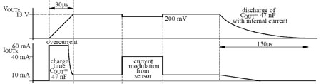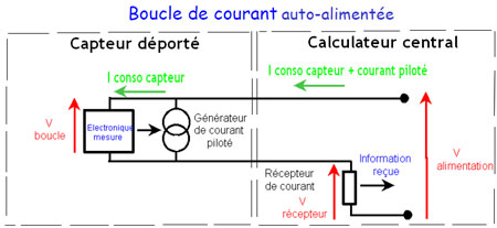 Dans le cas qui nous intéresse et qui est utilisé par les capteurs déportés dans les systèmes airbag, on utilise une boucle de courant autoalimentée: