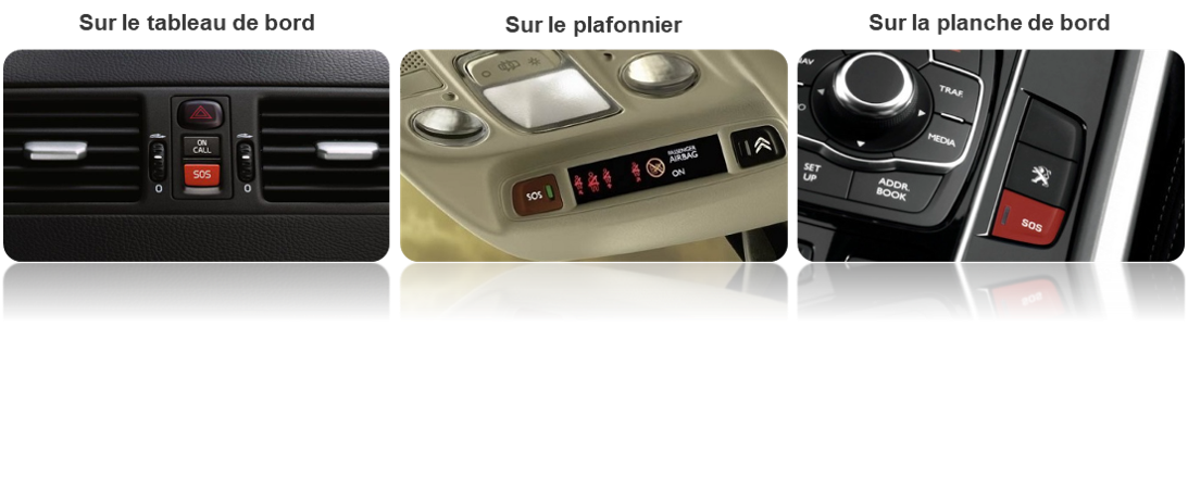 L'appel peut aussi être lancé par déclenchement manuel de l'occupant avec un appui sur le bouton SOS dans le véhicule.