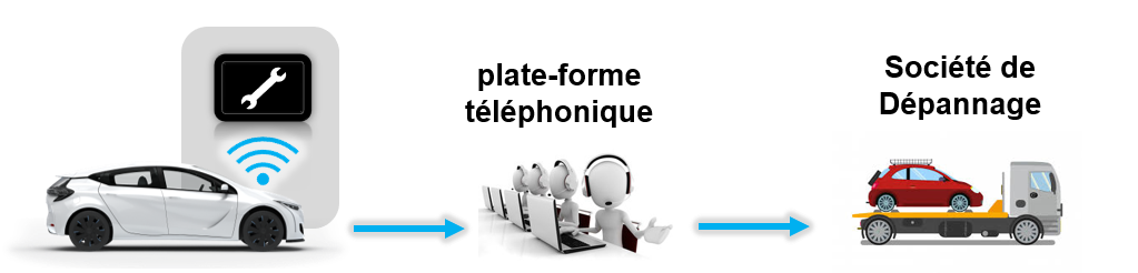 Il établit une communication entre le conducteur et des plateformes BCall (Breakdown call=Appel panne, assistance) susceptibles d'apporter différentes aides et services au conducteur.