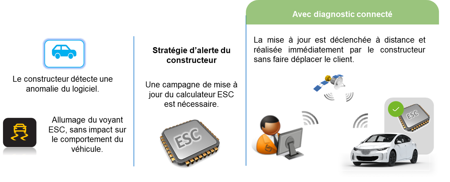 Certaines interventions pourront être traitées à distance, par télédiagnostic et/ou téléconfiguration, et ne nécessiteront aucune intervention en atelier. Comme les mises à jour à distance d'un système permettant de résoudre un problème par exemple.