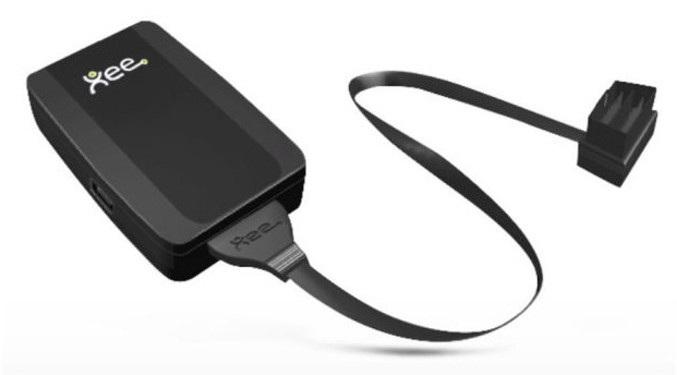 Le boîtier Xee se branche à la prise diagnostic. Il lit en temps réel et à distance les données du véhicule via le smartphone grâce à l'application MyXee obtenue depuis PlayStore ou l'App Store.