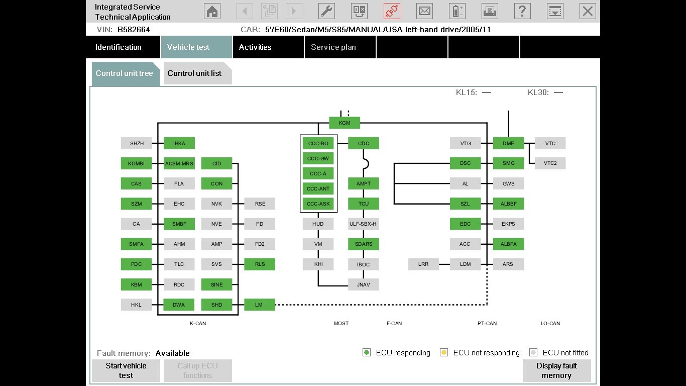 Il est possible d'effacer la mémoire d'un calculateur, de tester les composants. Il est possible d'analyser les pièces d'usures (freins, huile moteur) grâce au réseau de capteurs de maintenance CBS (Condition Based Service, système de maintenance intelligent).